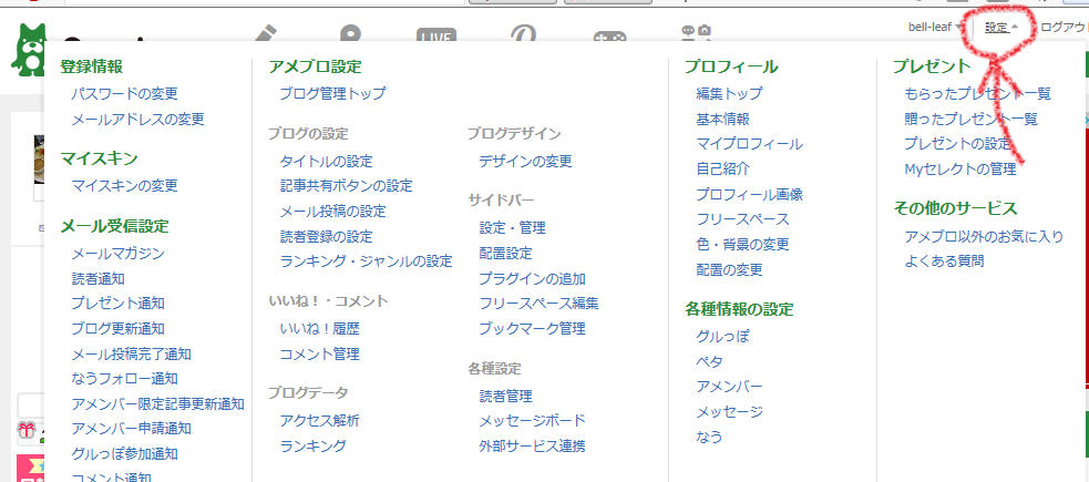 アメブロの「マイページ」から「設定」を開いて、