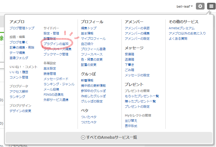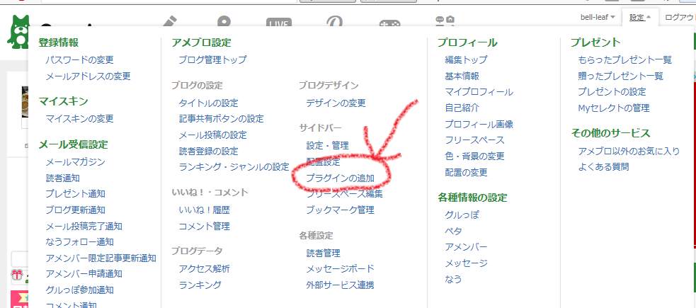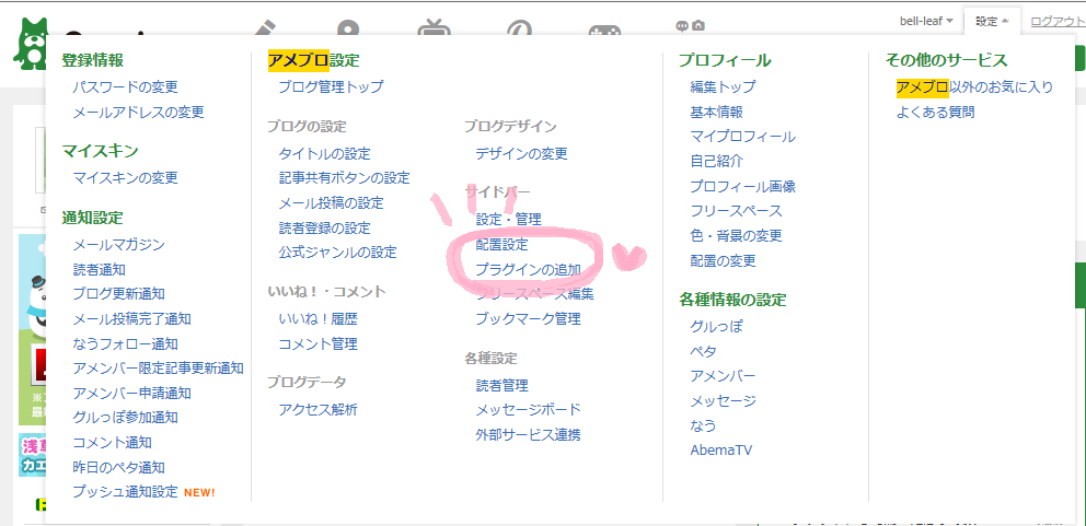アメブロの「マイページ」から「設定」を開いて、